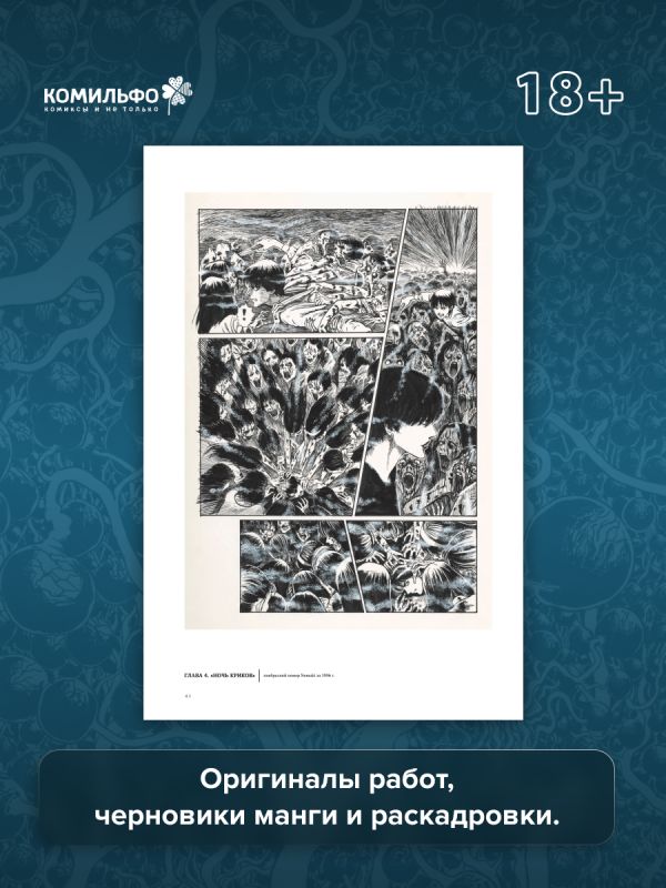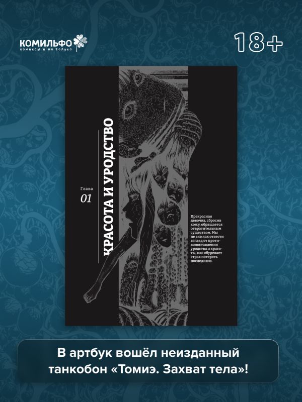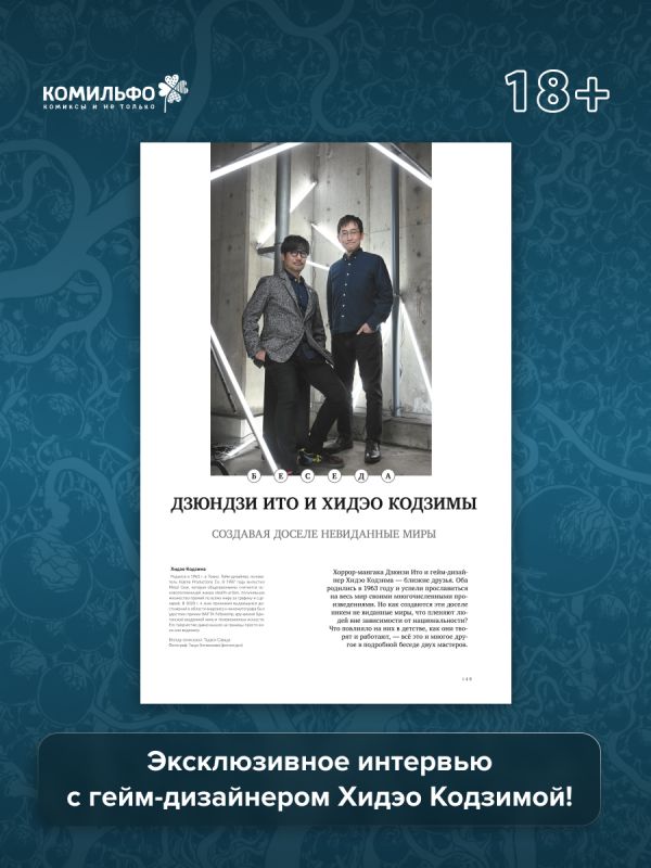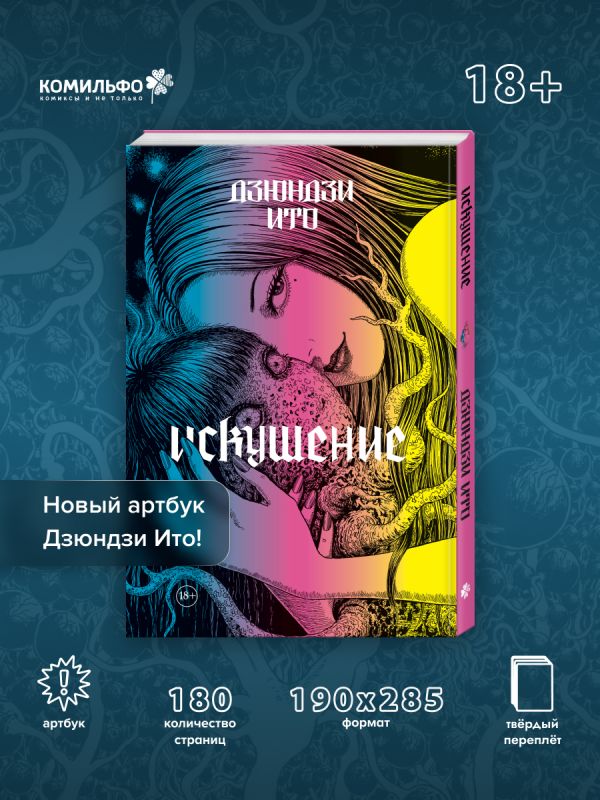Дзюндзи Ито — японский автор хоррор-манги, получивший мировую известность. Его «Томиэ», «Спираль», «Рыба» и другие работы по праву считаются шедеврами визуального искусства. Неповторимый стиль Дзюндзи Ито завораживает читателя с первых страниц, а разнообразие тем поистине поражает. В 2024 году в литературном музее Сэтагая проходила выставка «Искушение», на которой демонстрировались оригиналы его работ, а также черновики и раскадровки манги Ито-сэнсэя — большая часть экспозиции представлена в этом артбуке с эксклюзивными комментариями автора. Издание дополняет обширное интервью с гейм-дизайнером Хидэо Кодзимой, создателем серий Metal Gear и Death Stranding, а также неизданный танкобон «Томиэ. Захват тела» — новейшая история о бессмертной красавице.