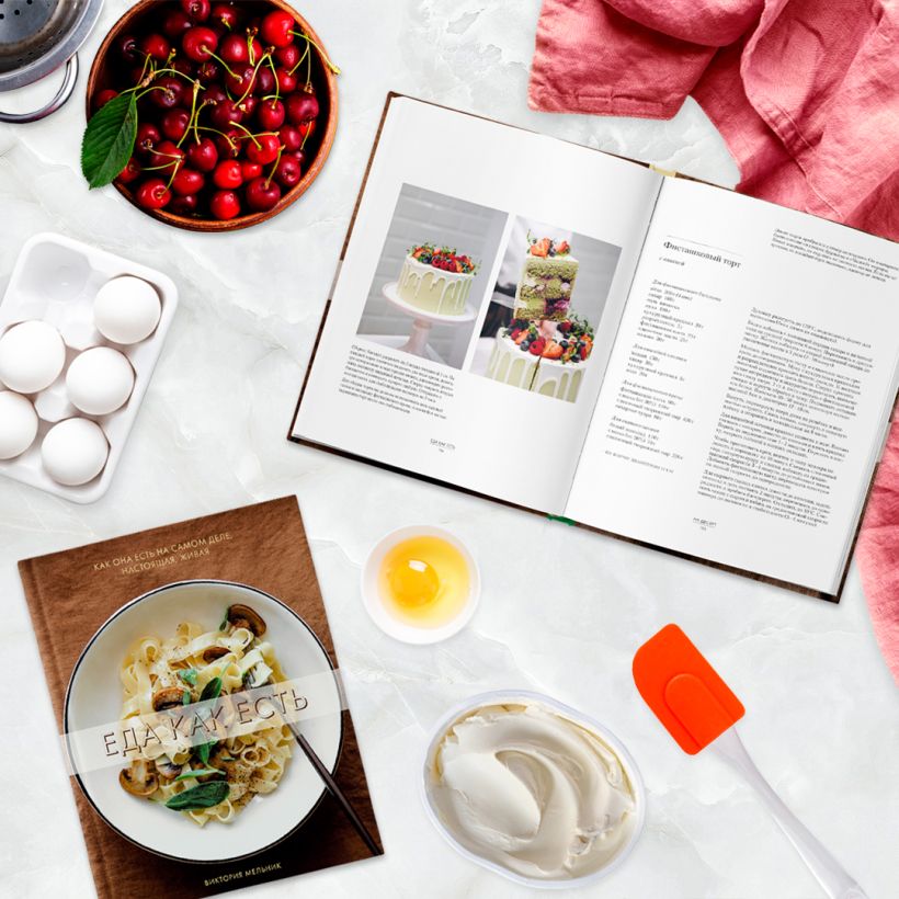 Большая и очень красивая книга про еду, про настроение и эмоции, любовь к продуктам и кухне. С каждым блюдом автора книги, популярного блогера и кулинара Виктории Мельник (@vicky_bakery), связана своя отдельная маленькая история, которая прибавляет ему ещё больше уникальности и неповторимости. Помимо набора ингредиентов, еда — это в первую очередь то, что вы чувствуете, - уверена Виктория. Датский блин с опятами и острый мексиканский суп, ленивые вареники и "мамины" сочники, томатное перлотто и полента, бриошь с моцареллой и фисташковый торт - калейдоскоп вкусов и впечатлений, который зовет читателей за собой в прекрасное кулинарное путешествие.