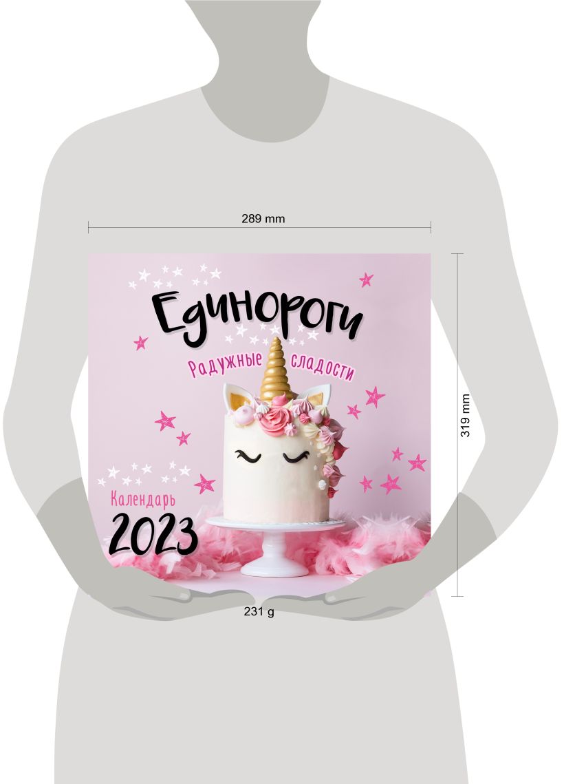 Яркий красочный кулинарный календарь с единорогами и десертами на каждой странице.