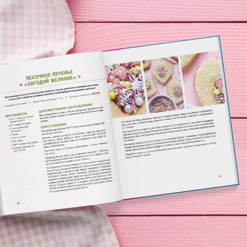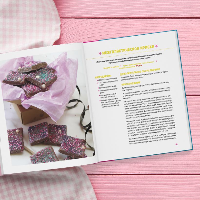 Вы готовы отправиться в гастрономическое путешествие в магическую страну единорогов? Эта кулинарная книга, наполненная блестками и радужными цветами, поможет вам приготовить сказочные блюда, которые перенесут вас с волшебные края. «Поцелуи единорога» и сверкающие тарталетки, радужное желе и единорожий попкорн – с такими блюдами вы сможете устроить вечеринку в стиле unicorn, либо насладиться ими самостоятельно, чтобы перенестись в страну сахарных грез и сказочного наслаждения.