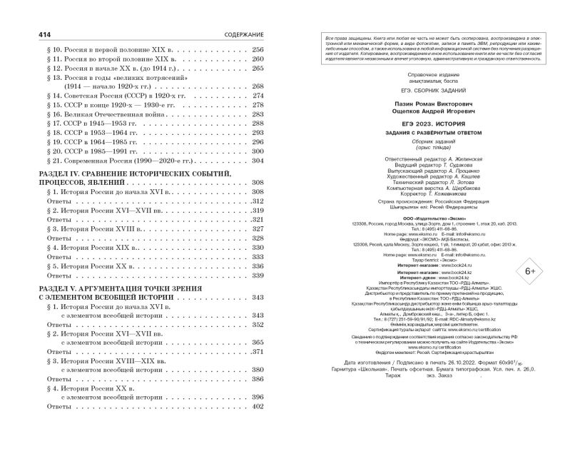 Пособие адресовано учащимся старших классов, планирующим сдавать ЕГЭ по истории. Издание содержит более 1000 заданий на: • анализ исторических источников по Великой Отечественной войне; • установление причинно-следственных связей, охватывающих курс истории с древнейших времён до современности; • работу с историческими понятиями, сгруппированными в хронологической последовательности; • сравнение исторических событий, процессов, явлений; • аргументацию точки зрения с элементом всеобщей истории. Также в пособии даются подробные ответы ко всем заданиям, примеры их выполнения и методические рекомендации для сдачи Единого государственного экзамена по истории. Книга поможет подготовиться к самым сложным заданиям с развернутым ответом на ЕГЭ-2025, за которые можно получить максимальное количество баллов (14 из 42 первичных). Занимаясь по этому пособию, ученики 10—11 классов смогут самостоятельно овладеть всем спектром умений и навыков работы с историческим материалом, необходимых для выполнения заданий высокого уровня сложности. А. И. Ощепков — опытный преподаватель истории и обществознания, репетитор, специалист по подготовке школьников к экзаменам и олимпиадам, автор учебных пособий по истории, автор и администратор популярных образовательных пабликов соцсети «ВКонтакте» «ЕГЭ. История» и «ЕГЭ. Обществознание» с суммарным числом подписчиков более 250 тысяч человек. Р. В. Пазин — кандидат исторических наук, автор более 200 пособий для подготовки к ОГЭ и ЕГЭ по истории и обществознанию, доцент кафедры методики преподавания истории МПГУ, главный редактор журнала «Преподавание истории в школе».