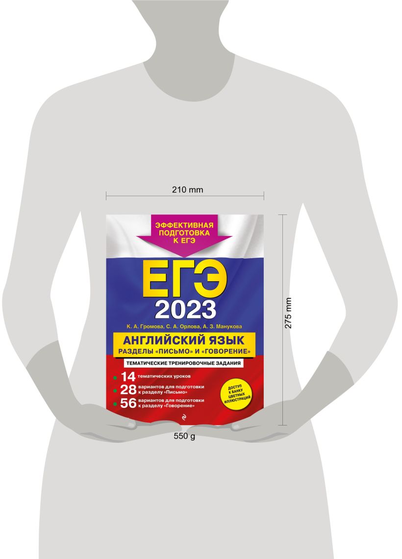 Издание адресовано учащимся старших классов, планирующим сдавать ЕГЭ по английскому языку. В книге приводится уникальная авторская методика подготовки к самым сложным разделам ЕГЭ по английскому языку — «Письмо» («Письменная речь») и «Говорение» («Устная речь»): • комплекс упражнений, сгруппированных в 14 тематических уроков; • 28 тренировочных вариантов для подготовки к разделу «Письмо»; • 56 тренировочных вариантов для подготовки к устной части; • опорные фразы для выполнения заданий разделов «Письмо» и «Говорение»; • примеры выполнения заданий 37 и 38 письменной части и задания 4 устной части; • шаблоны устного ответа. К пособию прилагается обширный банк цветных иллюстраций в электронном виде для выполнения заданий устной части, доступный по QR-коду. Книга будет полезна учителям английского языка, так как дает возможность эффективно организовать подготовку учащихся к ЕГЭ непосредственно на уроках, в процессе изучения учебного материала. Материалы пособия помогут учащимся приобрести практические навыки выполнения заданий из разделов «Письмо» («Письменная речь») и «Говорение» («Устная часть»), значительно увеличить лексический запас и качественно подготовиться к ЕГЭ по английскому языку.