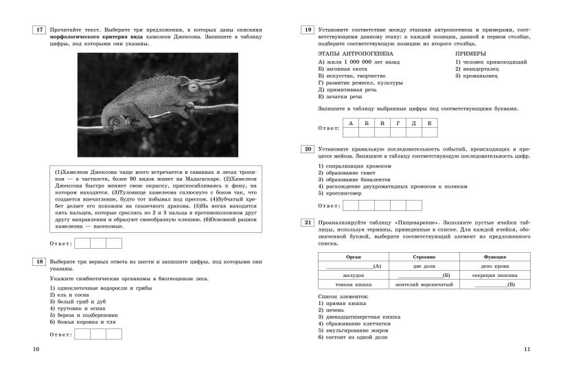 Пособие адресовано учащимся старших классов, планирующим сдавать ЕГЭ по биологии. Тренировочные задания позволят систематически, при прохождении каждой темы, готовиться к экзамену. В пособии представлены задания разных типов по всем темам ЕГЭ с ответами, а также тренировочные варианты ЕГЭ. Книга будет полезна не только ученикам, но и учителям биологии, так как дает возможность эффективно организовать подготовку учащихся к ЕГЭ непосредственно на уроках, в процессе изучения всех тем. Представлены задания, максимально приближенные к реальным, используемым на ЕГЭ, но распределенные по темам в порядке их изучения в 10—11 классах старшей школы. Работая с пособием, можно последовательно отработать каждую тему, устранить пробелы в знаниях, а также систематизировать изучаемый материал.