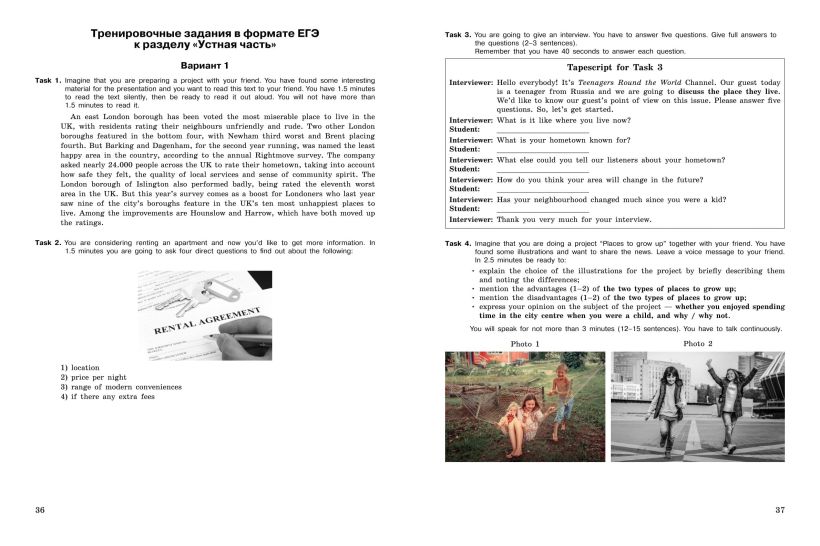 • примеры выполнения заданий 37 и 38 письменной части и задания 4 устной части;