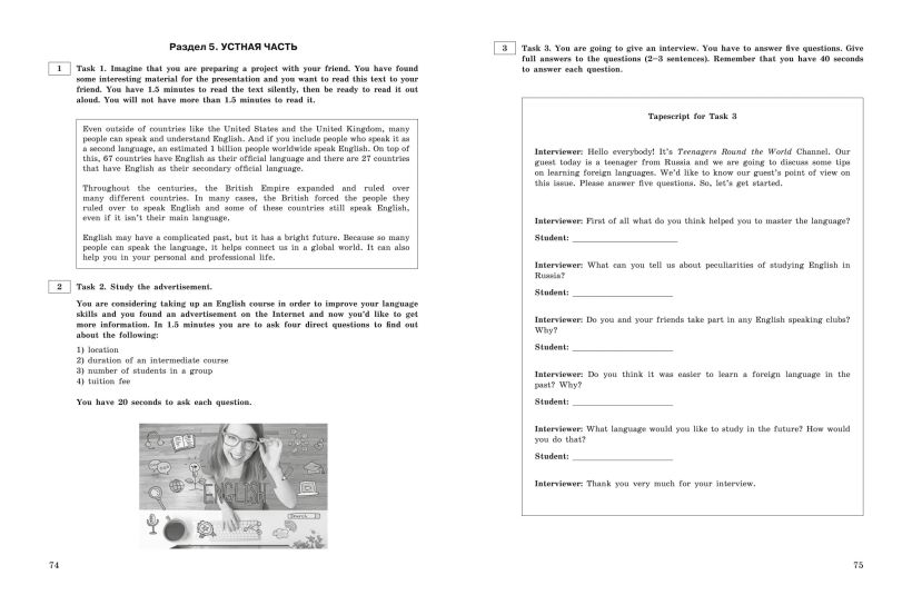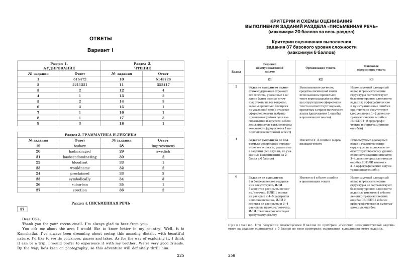 • примерные ответы к заданиям 37, 38 письменной части и заданиям 2, 3, 4 устной части;