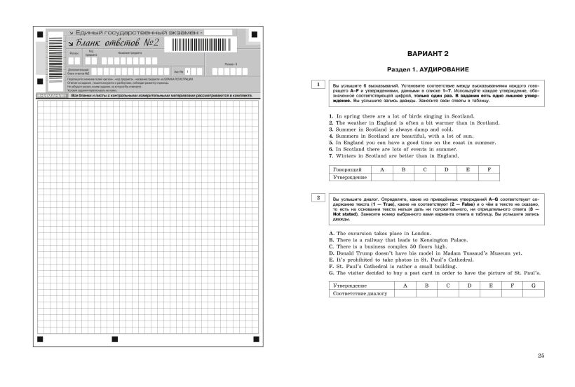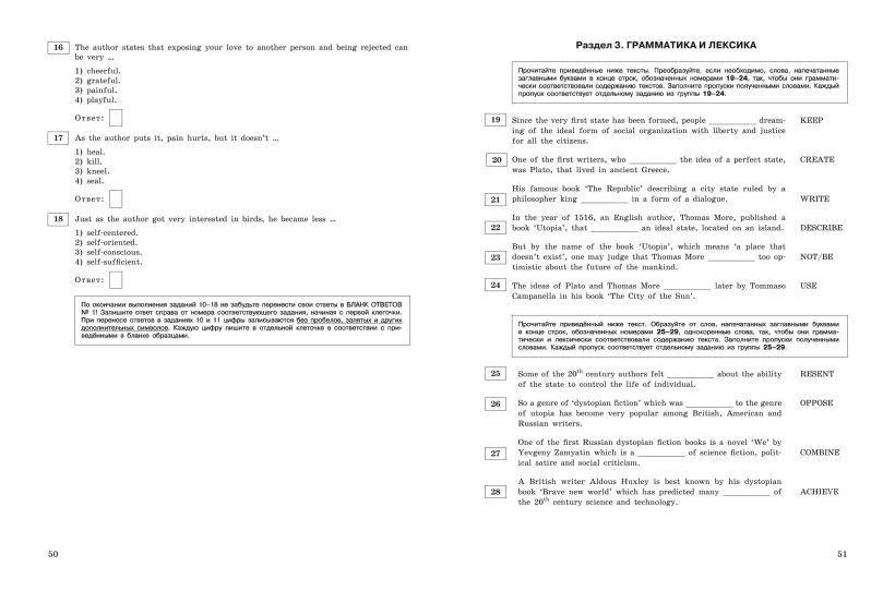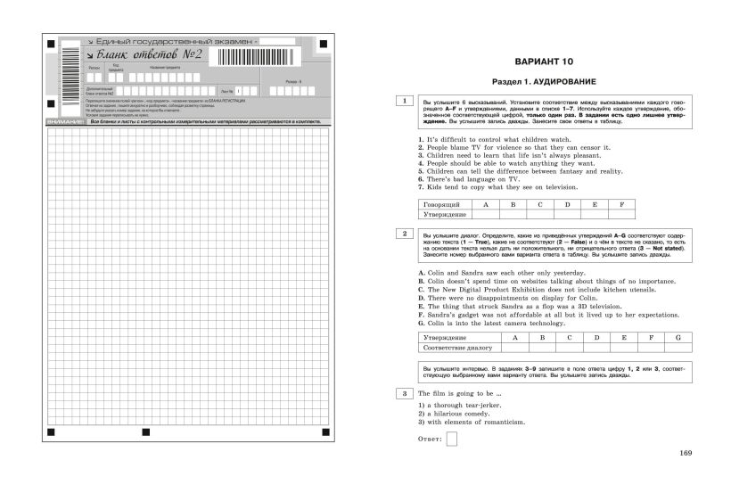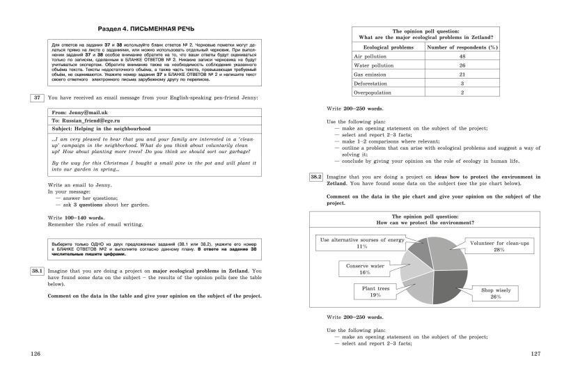 • примерные ответы к заданиям 37, 38 письменной части и заданиям 2, 3, 4 устной части;