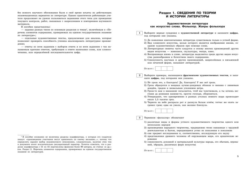 В пособии представлено более 1000 заданий разных типов по разделам и темам, проверяемым на ЕГЭ. В первой части книги предлагаются задания, проверяющие знания теории литературы, во второй части — задания, позволяющие анализировать художественные произведения школьной программы.