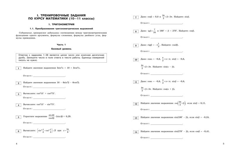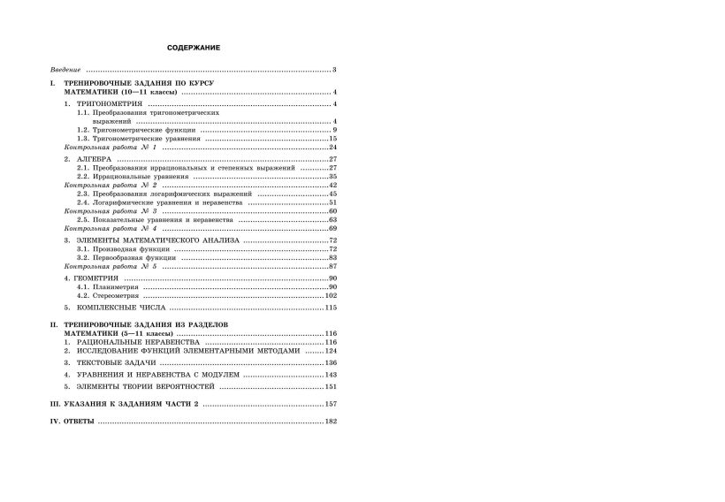 Книга содержит тренировочные задания по математике в форме ЕГЭ, сгруппированные по темам в порядке их изучения в 10—11 классах старшей школы. К каждой учебной теме даются задания базового и профильного уровней сложности. После каждой темы представлены проверочные обобщающие тесты, соответствующие ЕГЭ. В конце книги — ответы ко всем заданиям, в том числе решения сложных заданий.