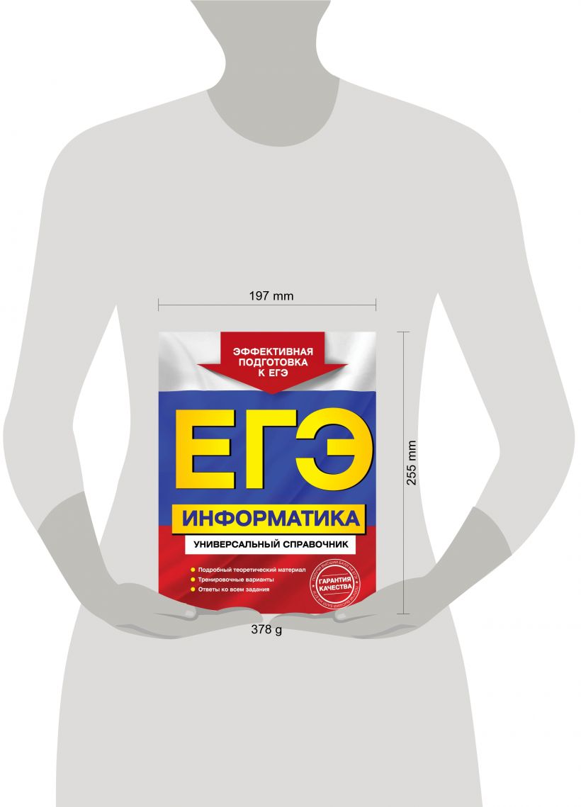 Пособие содержит подробный теоретический материал по всем темам, проверяемым экзаменом. После каждого раздела даются примеры заданий ЕГЭ и тренировочный тест. Для итогового контроля знаний в конце справочника приводятся тренировочные варианты, соответствующие ЕГЭ по информатике. Ко всем заданиям приводятся ответы.