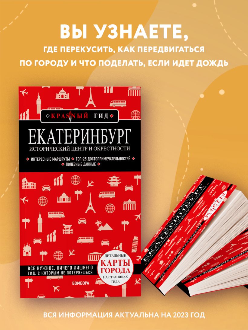 В путеводителе вы найдете описания самых интересных мест в столице Урала, а сориентироваться на местности помогут готовые маршруты и карты, расположенные на страницах гида.