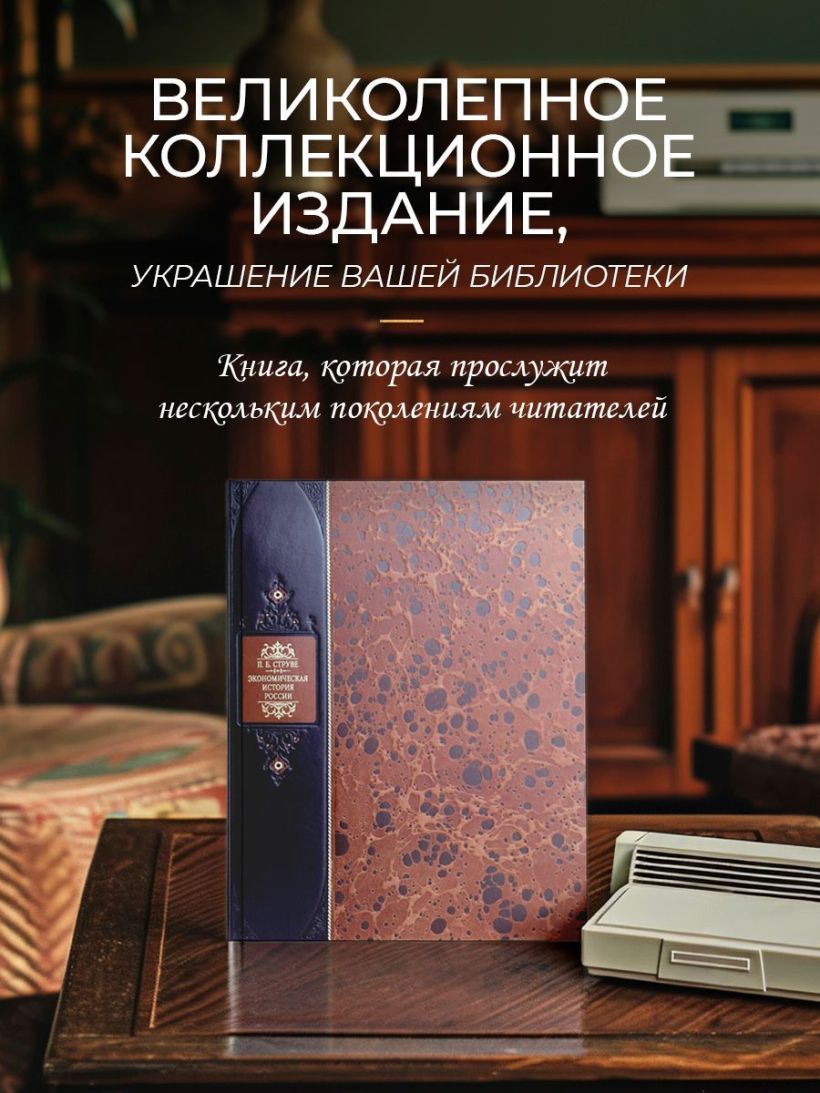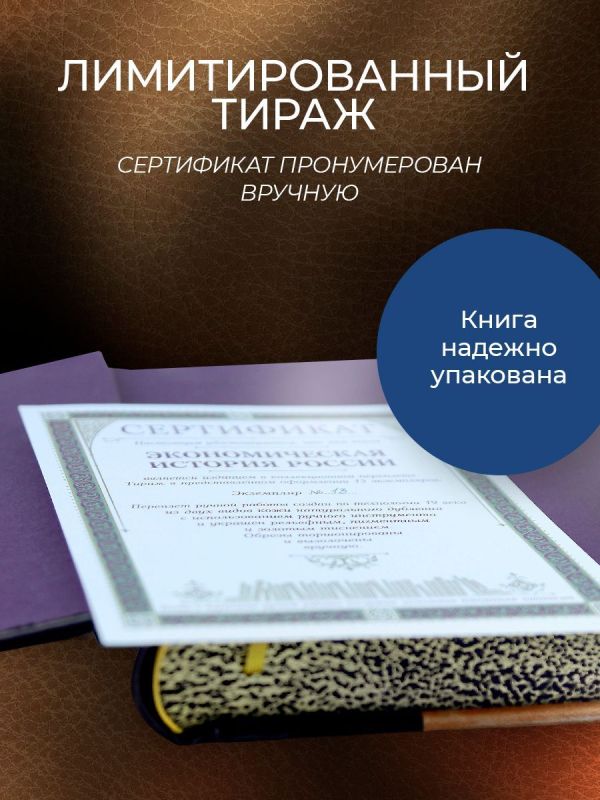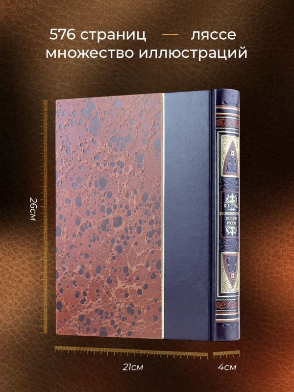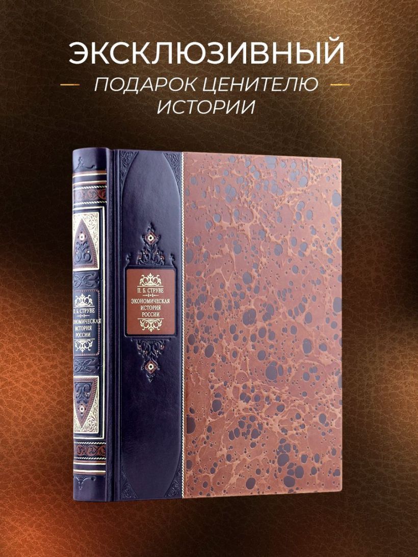 Экономическая история России. Книга в коллекционном переплете из двух видов кожи с рисунком мраморной бумаги и с изящным тиснением в стиле 19 века.