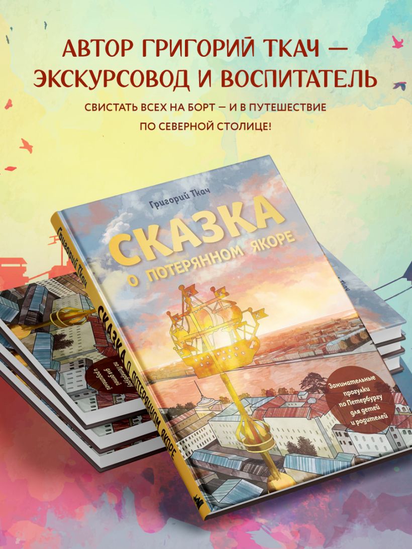 Иллюстрированная история о путешествии золотого кораблика со шпиля Адмиралтейства, который ищет свой якорь и попадает в удивительные приключения.
