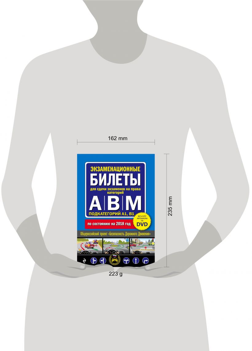 Экзаменационные билеты для сдачи экзаменов на права категорий "А", "В" и "M", подкатегорий A1, B1 + DVD с теоретическим видеокурсом по состоянию на 2018 год
