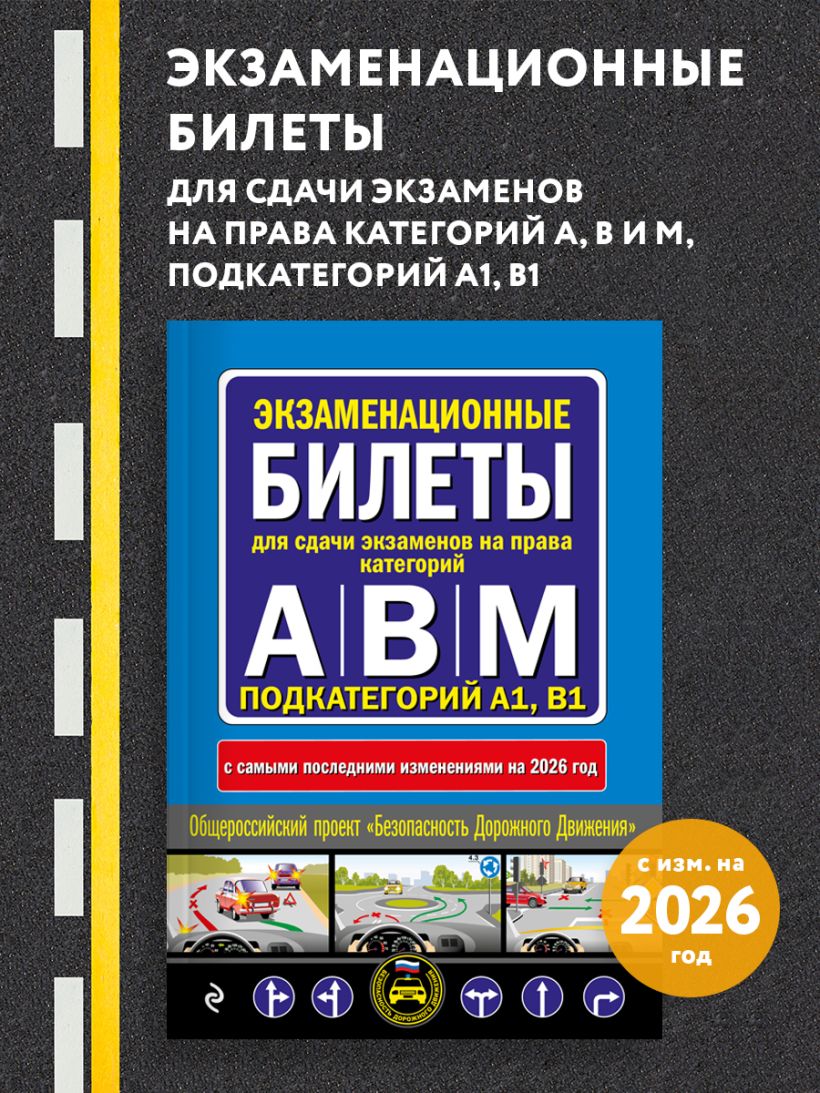 Экзаменационные билеты для сдачи экзаменов на права категорий А, В и M, подкатегорий A1, B1 (с изм. на 2026 год)