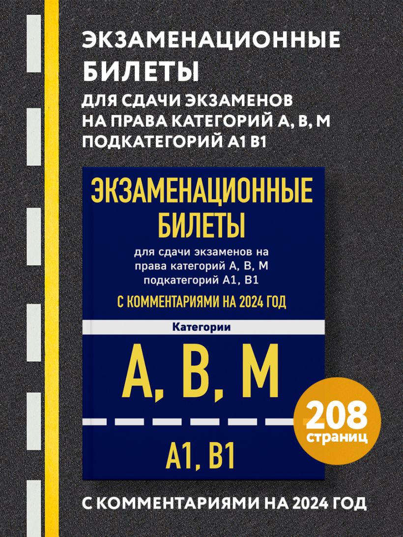 Экзаменационные билеты для сдачи экзаменов на права категорий А, В, М подкатегорий А1 В1 с комментариями на 2024 год
