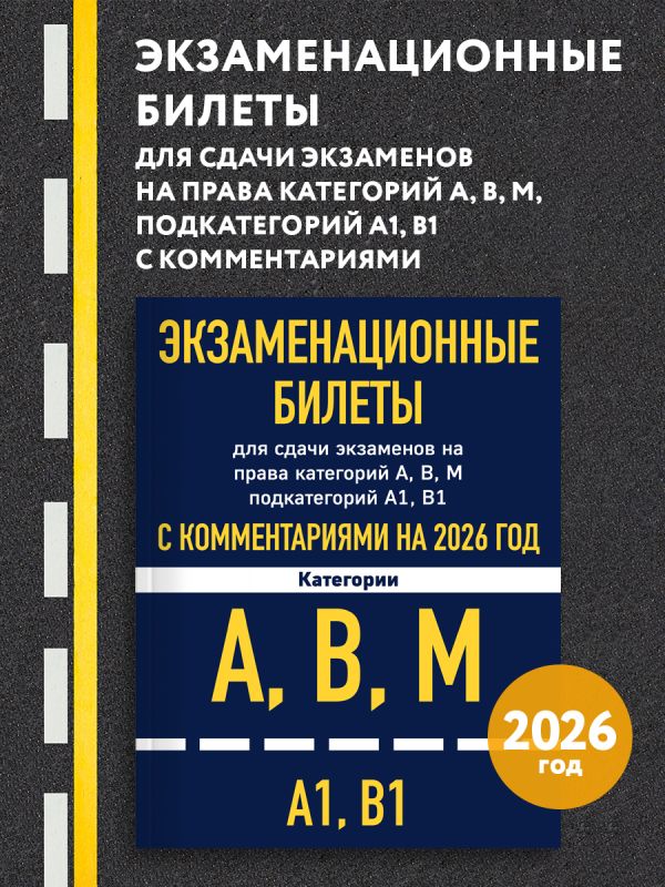 Экзаменационные билеты для сдачи экзаменов на права категорий А, В, М подкатегорий А1 В1 с комментариями на 2026 год