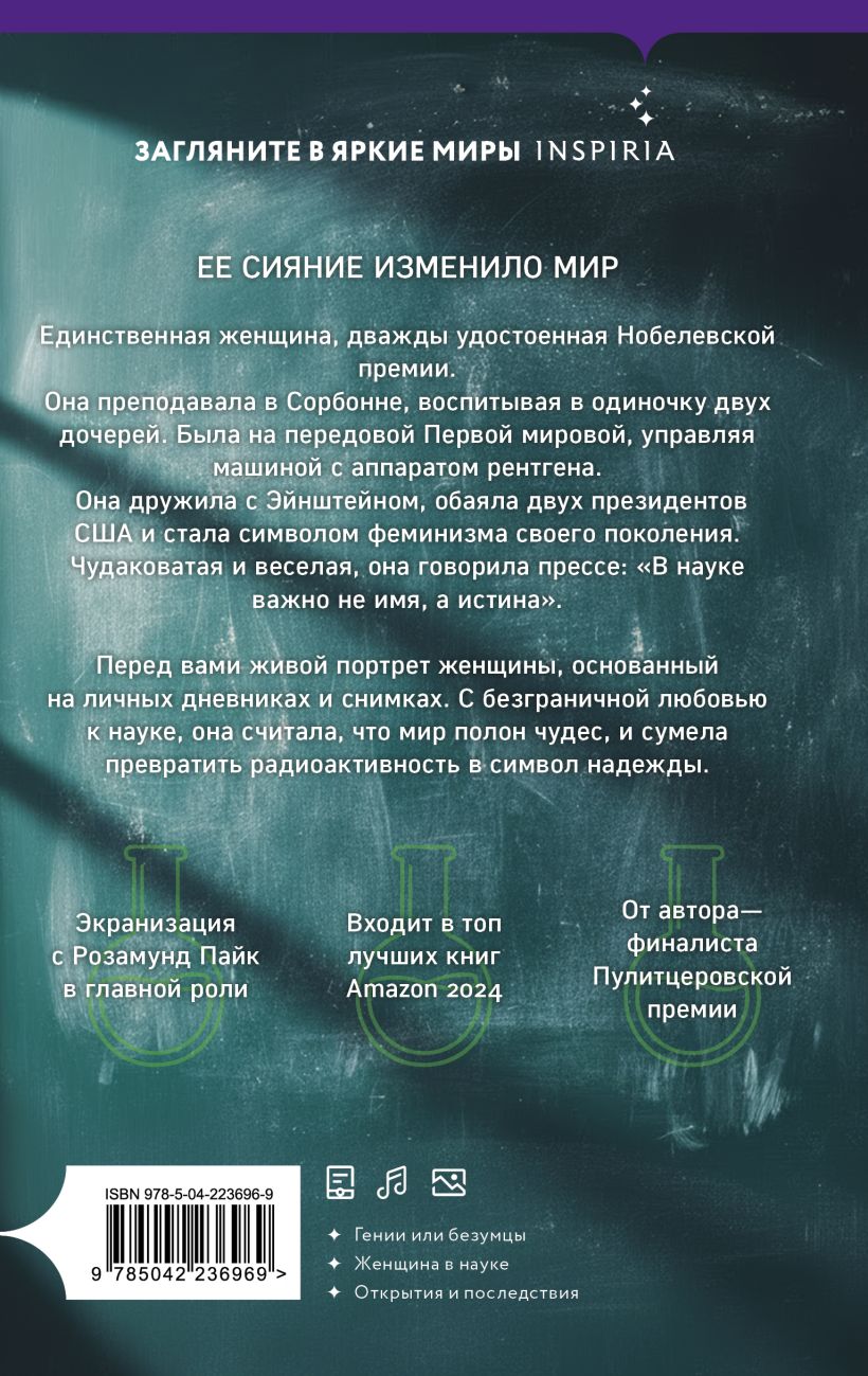 Мари Кюри — единственная в мире женщина, дважды удостоенная Нобелевской премии. После трагической гибели мужа она возглавила его кафедру в Сорбонне и в одиночку воспитывала двух дочерей. Дни напролёт проводила в лаборатории, открывая элементы, которые после перевернули мир. Перед вами живой портрет гениальной учёной, сотканный из личных дневников и архивных фотографий.