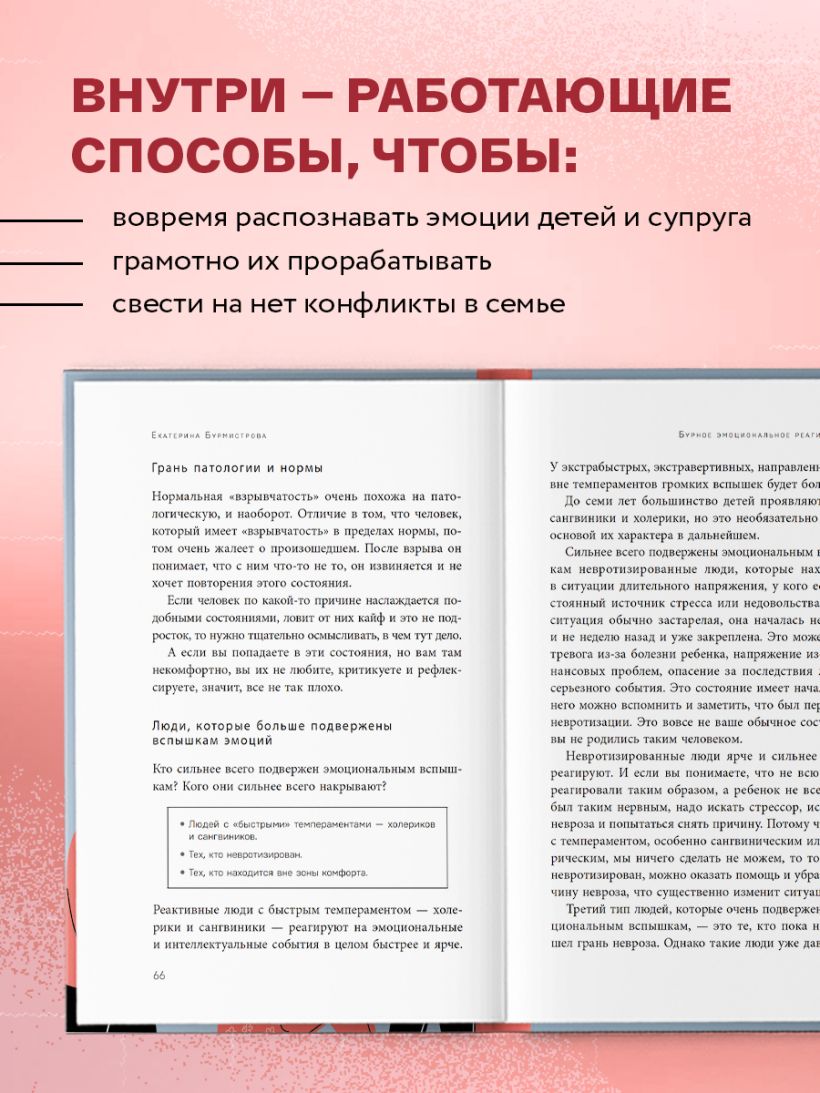 Это семейная книга-инструмент, которая просто и понятно объясняет, что делать, когда сильные эмоции и сложные чувства взяли верх. Психолог расскажет, как предотвращать конфликты уже на стадии зарождения, научиться понимать друг друга и построить поистине гармоничные и доверительные отношения в семье: между супругами, родителями и детьми. А главное — как воспитать эти навыки в своих детях. Больше никаких истерик у ребенка, срывов подростков на родителей и конфликтов между мужем и женой.