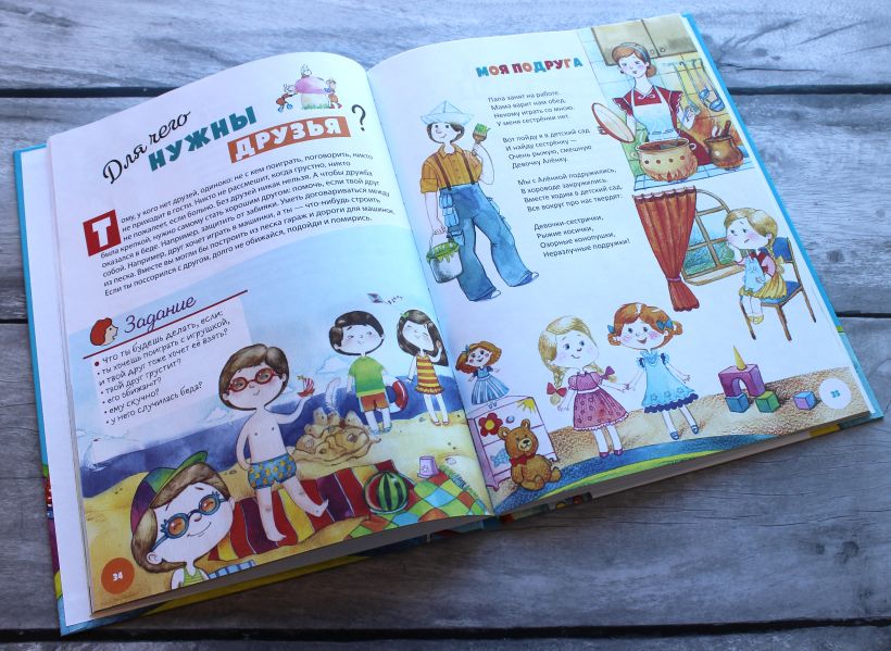 Эта книга для тех детей, которые уже научились читать, но пока делают это не очень хорошо. В ней есть небольшие по объему тексты, предложения и слова — простые по структуре, сюжет увлекательный, шрифт — крупный, как в «Азбуке». Это не простой сборник заданий, а книга-игра.