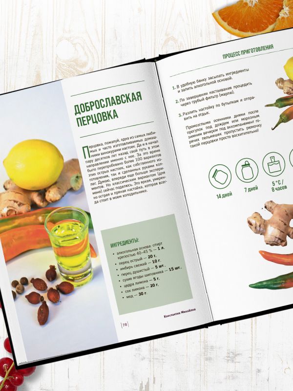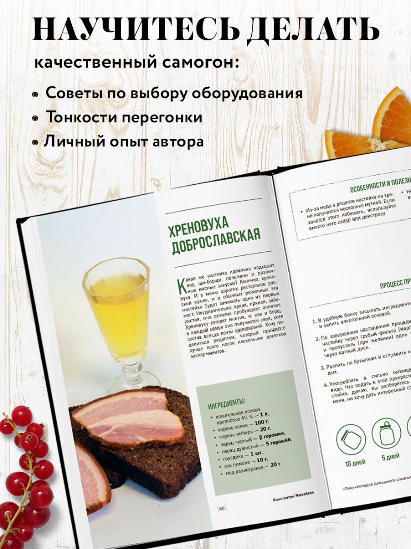 Книга Константина Михайлова (Доброслав13) — это полный путеводитель по миру домашних крепких и сладких напитков. Здесь все: от азов самогоноварения до уникальных авторских настоек и нежных ликеров — 55 рецептов на любой вкус.