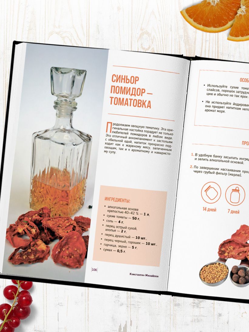 - Авторские пряные настойки с необычными ингредиентами: апельсины, томаты, сельдерей, специи.