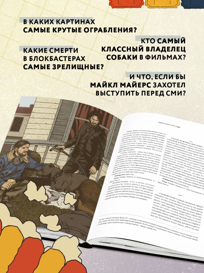 Очень просто. В ней тридцать глав, каждая — какой-то вопрос о кино, на который нужно ответить. Иногда это очень бестолковые вопросы, а иногда — весьма серьезные. Но я отвечаю на них (надеюсь, что так) с огромным вниманием и уважением. Читайте ее, как вам захочется. Не нужно, скажем, читать главу 13 (о блокбастерах), чтобы понять смысл главы 14 (о фильме «Селена»). О, и еще: в книге довольно много рисунков. Мне нравятся иллюстрации, потому что они придают законченность всему и помогают перенести читателя в ту обстановку, в которой был я сам, когда это писал. Есть, к примеру, глава, написанная в форме пресс-конференции, которую проводит Майк Майерс — звезда франшизы «Хэллоуин». Глупо, конечно, но там есть рисунок Майка за трибуной перед толпой журналистов, и когда смотришь на него, то переносишься в ту обстановку, и начинает казаться, что это не вымышленная ситуация, а реальный случай.