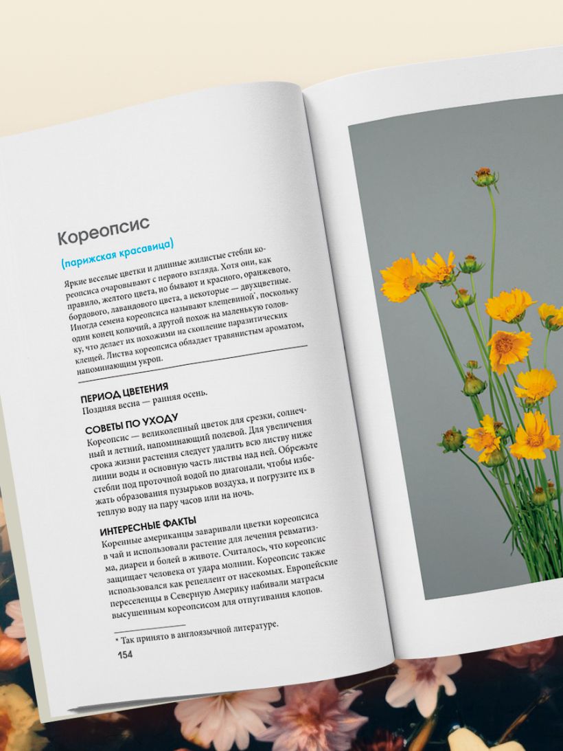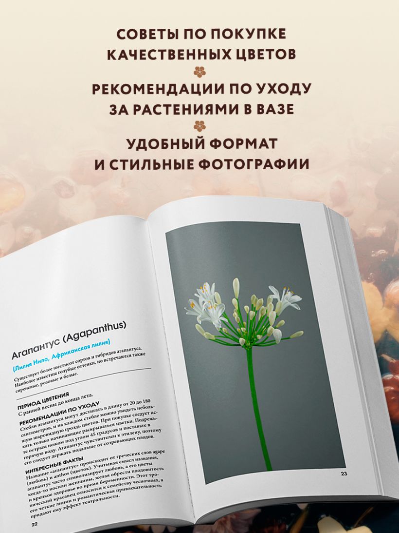 - более 140 видов свежесрезанных цветов с детальными описаниями, интересными фактами и множеством красочных фотографий;