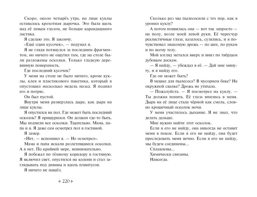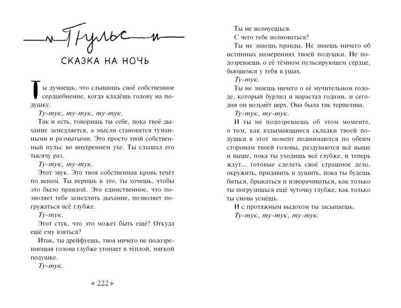 Чего ты боишься больше всего? Монстров, клоунов? А может быть, привидений… Ничего такого в этой книге ты не встретишь, но не думай, что она не способна тебя напугать. Ты замечал, какими странными могут обычные вещи? Микроволновка, бесконтрольно включающаяся посреди ночи, кукла, которая пристально смотрит на тебя каждый раз, когда ты заходишь в свою комнату… Теперь сможешь уснуть в полной темноте? Считай до тринадцати!..