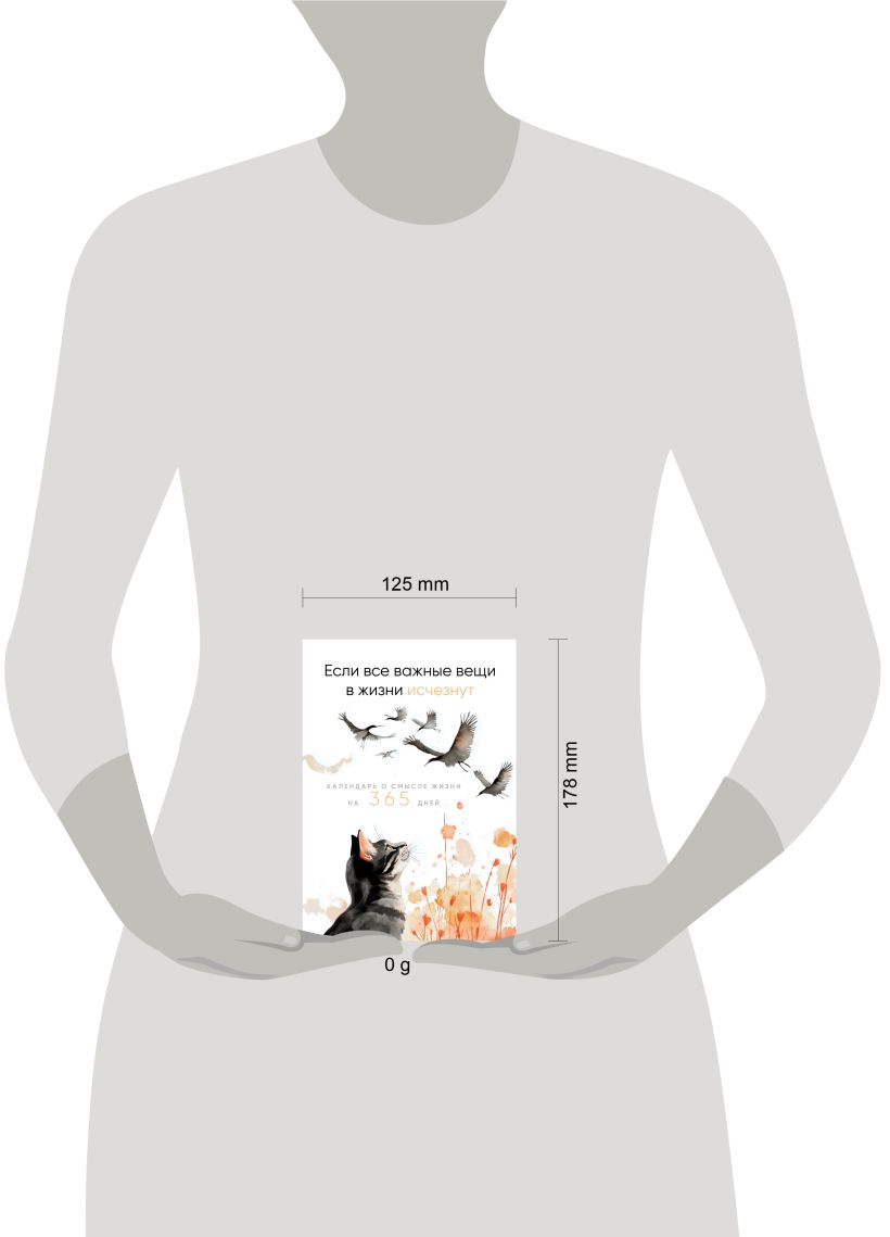 Что, если каждый день в жизни будет исчезать один предмет или чувство? Попробуйте прожить целый год вместе с настольным календарем-домиком по мотивам нашумевшего бестселлера «Если все кошки в мире исчезнут»! На каждой страничке вас ждут акварельные иллюстрации котиков и мотивационное предложение провести один день без какой-нибудь вещи. Календарь можно поставить на рабочий или журнальный стол, прикроватную тумбочку или просто на полку. Планируйте и наполняйте каждый свой день особым настроением и мыслями о том, что на самом деле важно в жизни. Подойдет как для личного пользования, так и в подарок.