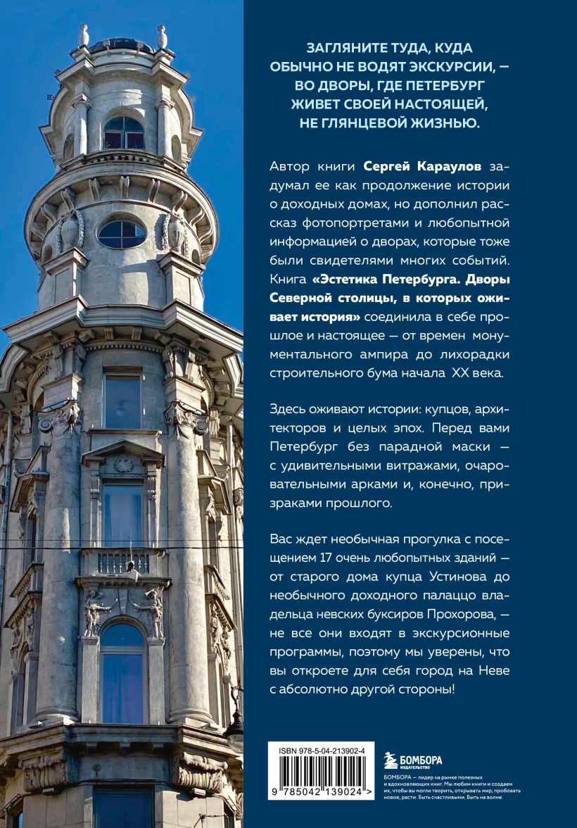 Автор книги, Сергей Караулов, задумал ее как продолжение истории о доходных домах, но дополнил рассказ фотопортретами и занимательной информацией о дворах, которые тоже были свидетелями многих событий. Новая книга соединила в себе прошлое и настоящее: от времен монументального ампира до лихорадки строительного бума начала XX века.