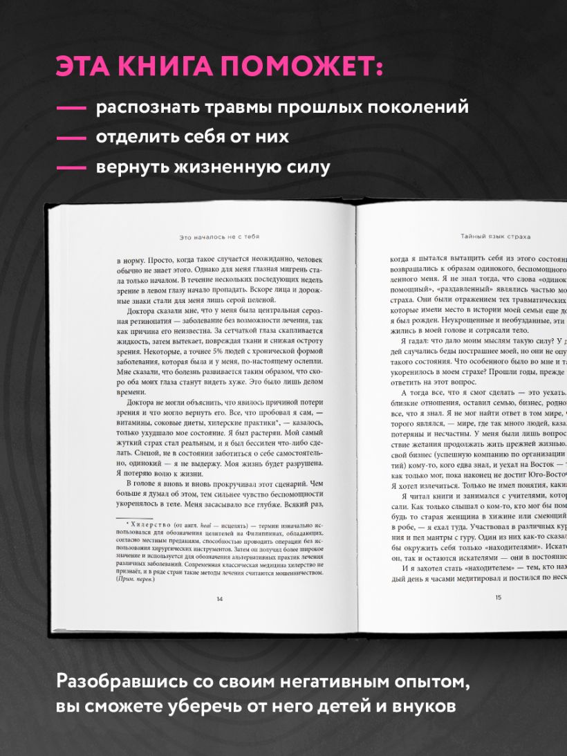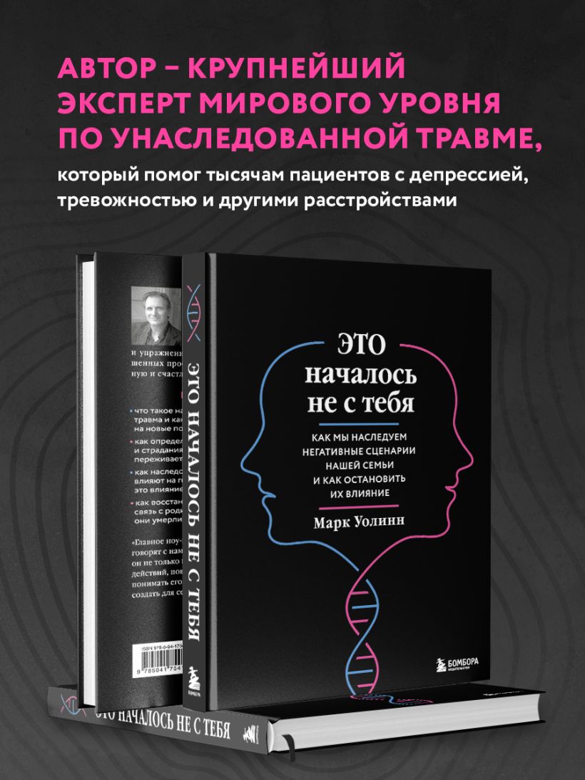 Депрессия, тревога, страхи, хронические боли, навязчивые мысли, которые отравляют нам жизнь... Помните ли, когда впервые столкнулись с ними? Возможно, что-то подобное переживали наши родители или дальние родственники? Каждый ребенок подсознательно несет отпечаток привычек и установок своих родных. Фрагменты их жизненного опыта, воспоминания, ощущения, переживания продолжают жить в нас, требуя своих решений. Ведущий специалист по работе с психологической травмой Марк Уолинн предлагает техники, которые помогут соединить в целое отдельные эмоции и события прошлого, тревожащие нас сегодня. Изучите сценарии, которые передаются в семье из поколения в поколение, и начните новую осознанную и счастливую жизнь.