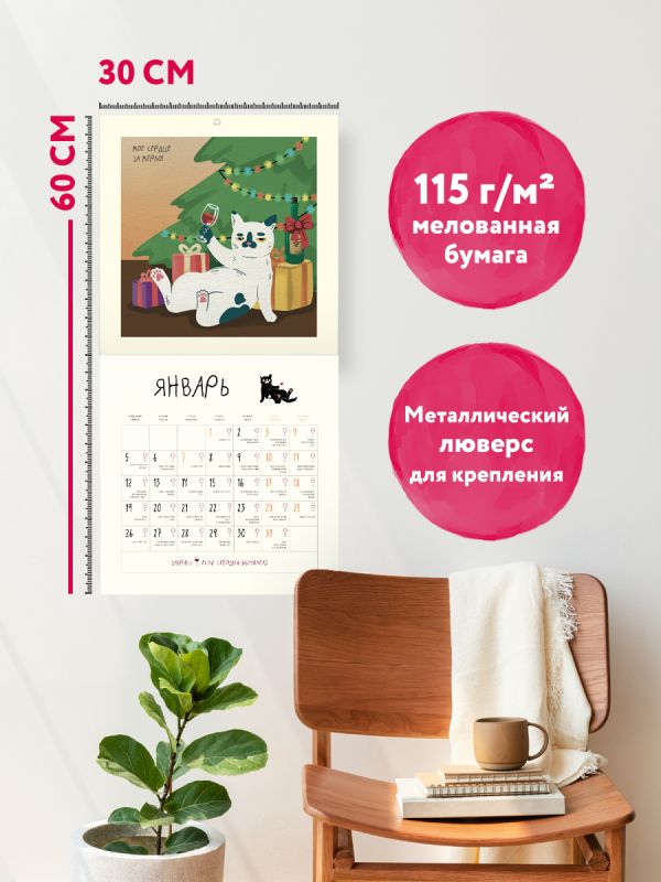 Календарь Татьяны Мужицкой с яркими иллюстрациями от Влады Коваль! В сетке — вдохновляющие цитаты автора и необычные праздники вроде «Всемирного дня “Спасибо”» и «Международного дня заботы о себе». Каждый месяц — как напоминание: жить можно с радостью, легкостью и любовью к себе. Совокупный тираж книг Татьяны Мужицкой — 360 000 экземпляров. Наши настенные календари отличаются высоким качеством исполнения! Тщательно подобранные иллюстрации, напечатанные на глянцевой бумаге высочайшего качества, станут настоящим украшением дома, а в календарной сетке найдется место для ваших планов: большие клетки позволят делать записи и организовать свой год! В серии настенных календарей издательства «ЭКСМО» каждый найдет тему по вкусу: великие художники, великолепные подборки с самыми знаменитыми произведениями искусства, легендарные кинематографические саги и игры, главные книжные авторы и бестселлеры, фотографии и иллюстрации любимых животных и многое-многое другое! Технические параметры: - Тип календаря — настенный перекидной. - Год — 2026. - Календарная сетка — с разбивкой по месяцам. - Вид скрепления — скрепка. - Ширина — 30 см. - Высота — 30 см. - Внутренний блок — мелованная бумага 150 г/м2. - Подложка — плотный гофрокартон для поддержания формы. - Индивидуальная упаковка в плотный целлофановый пакет.