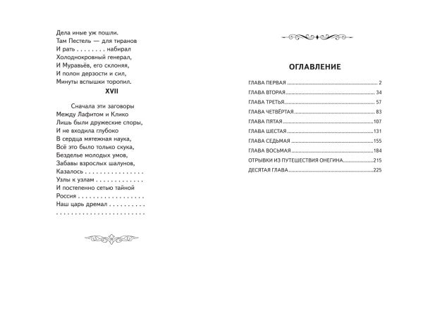 В книге представлен полный текст произведения, включая «Отрывки из путешествия Онегина» и неоконченную 10-ю главу, а также примечания и комментарии автора.