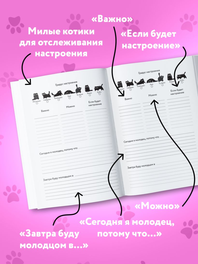 Пусть каждый день будет по-кошачьи гармоничным! Этот ежедневник поможет распланировать все дела и не забыть про заботу о себе.