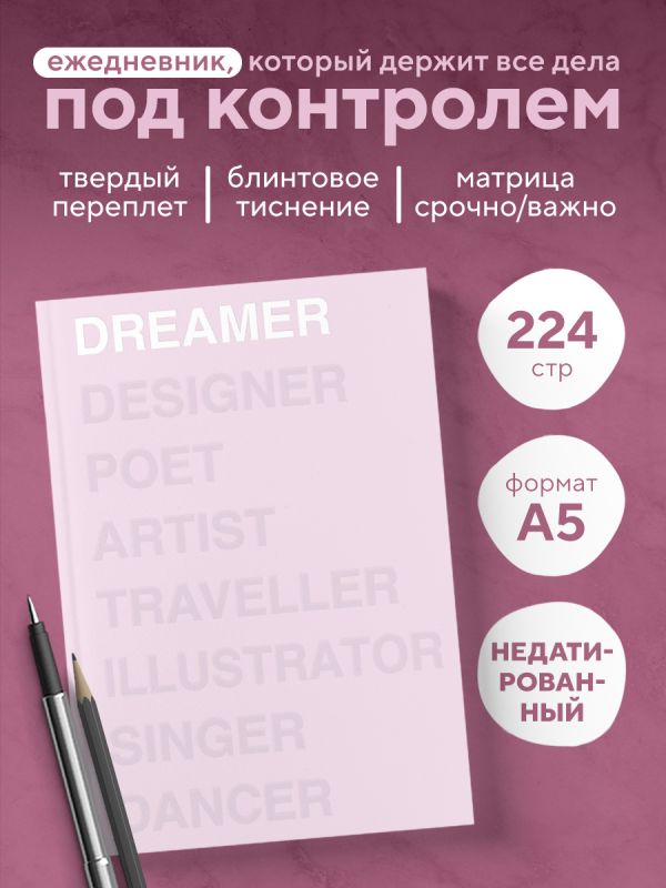 Недатированный ежедневник Dreamer формата А5 великолепно подойдет для записей и заметок.