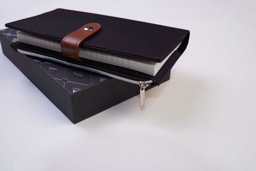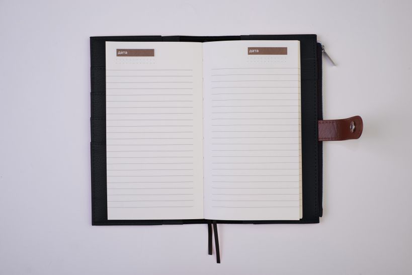 - Ежедневник-органайзер в кожаной обложке.