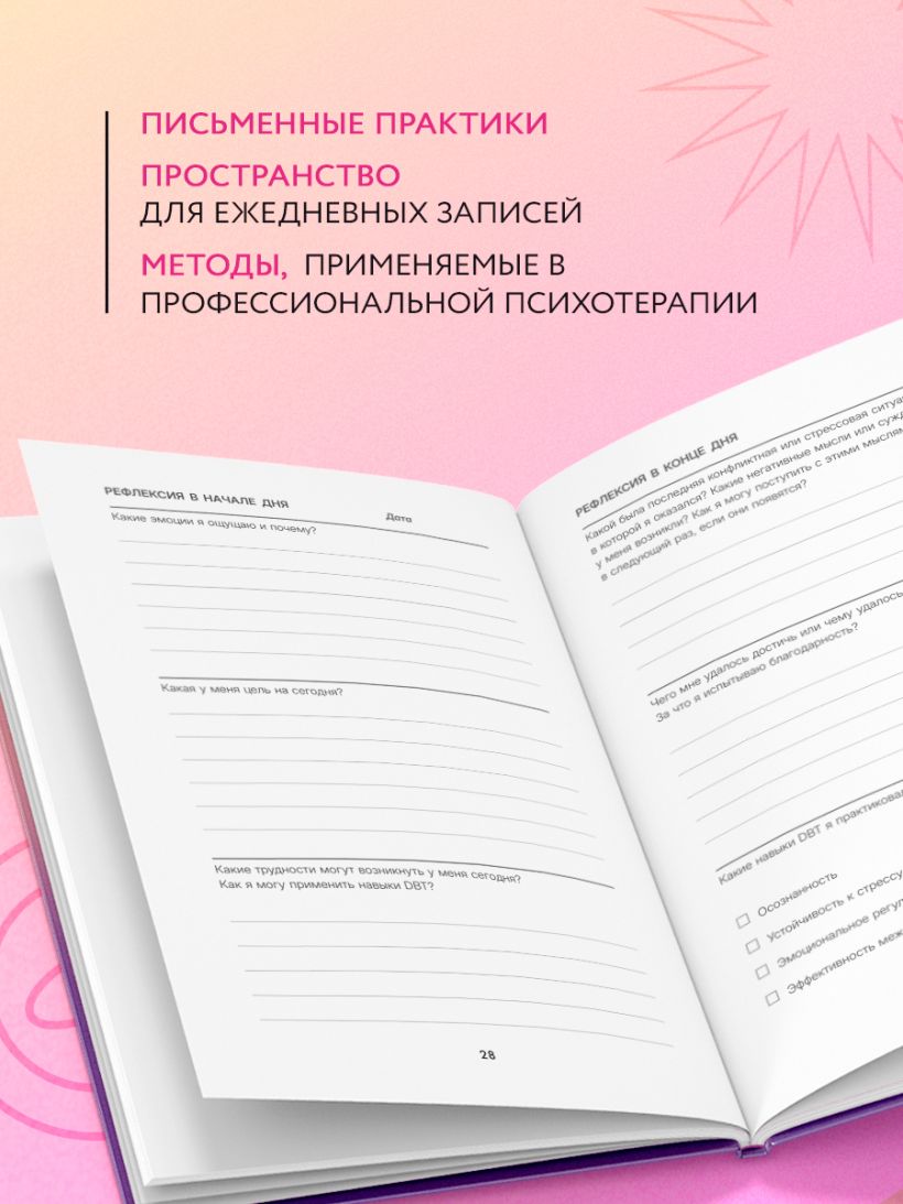 «В процессе работы с дневником вы увидите, как обретаете эмоциональную устойчивость. Дневник сделает этот процесс понятным и управляемым благодаря чёткой и легкой инструкции для анализа своего поведения». — Анна Аронштам, психолог и автор блокнота «Моя терапия»