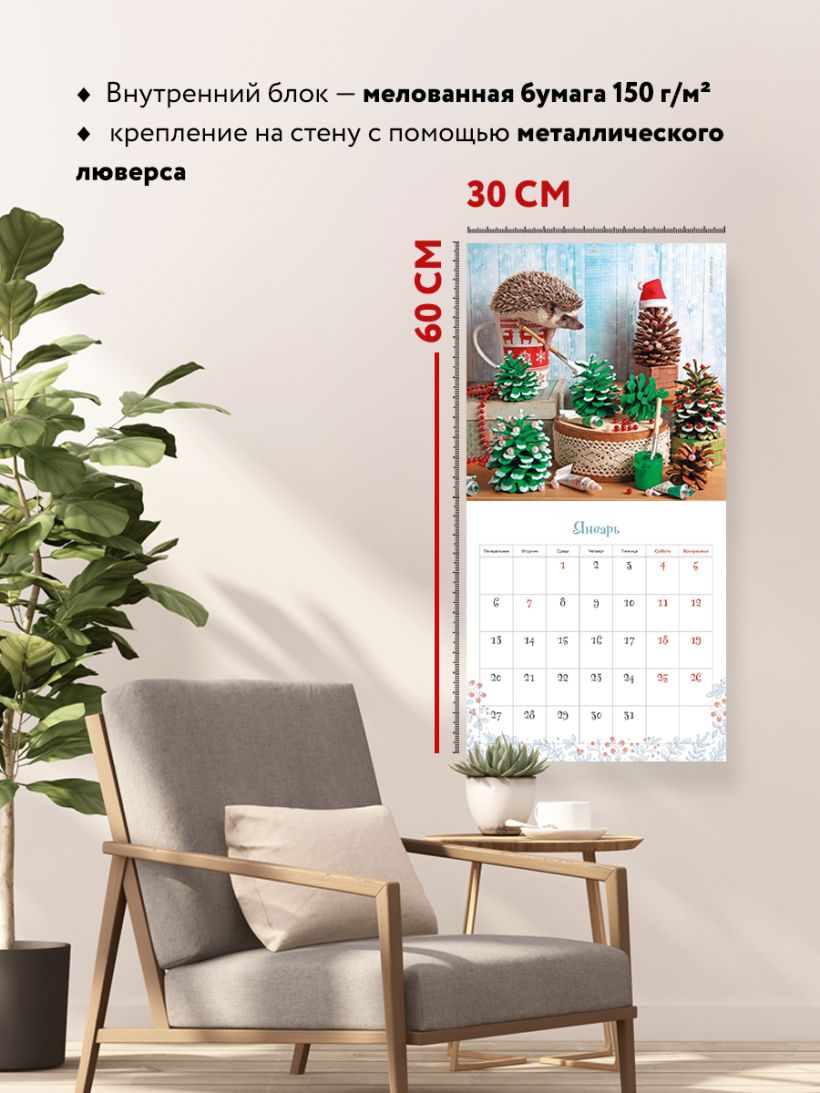 Наши настенные календари отличаются высоким качеством исполнения! Тщательно подобранные иллюстрации, напечатанные на глянцевой бумаге высочайшего качества, станут настоящим украшением дома, а в календарной сетке найдется место для ваших планов: большие клетки позволят делать записи и организовать свой год! В календаре также отмечены все государственные праздники.