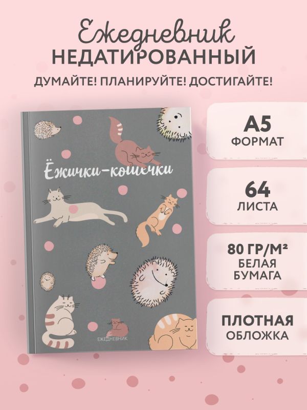 Ежички-кошечки. Ежедневник недатированный (А5, 64 л.)