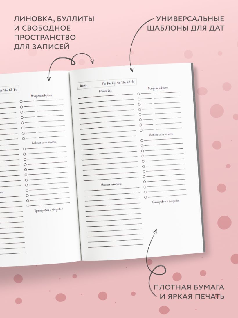 «К себе нежно» — это ежедневник от автора одноименного бестселлера. Он не про успешный успех и карьерную мотивацию, он — про бережное отношение к себе, про то тихое и нежное, что у вас внутри. С помощью этого ежедневника вы не только сможете помнить о предстоящих делах и задачах, но и обретете верного друга, который будет от страницы к странице обнимать вас словами. В ежедневнике вас ждут: • блоки для записей дел на будни и выходные; • «обнимательная» фраза-напутствие на каждую неделю; • цитаты из книги «К себе нежно»; • рубрика «Важно» для записи задач, требующих особого внимания; • рубрика «Чем я себя порадую?», куда можно вписывать все то приятное, что вы собираетесь сделать для себя; • трекеры для двух привычек; • необычный вопрос на «подумать» и «почувствовать» — для самопознания и исследования своих глубин; • трекер жизненного изобилия, который поможет убедиться: ваша жизнь намного богаче и интереснее, чем кажется; • «носочек накоплений», помогающий следить за тем, как копятся деньги на мечту; • раскраски, которые помогут развеяться, отвлечься или просто занять руки во время скучного совещания :) • и другие авторские материалы.