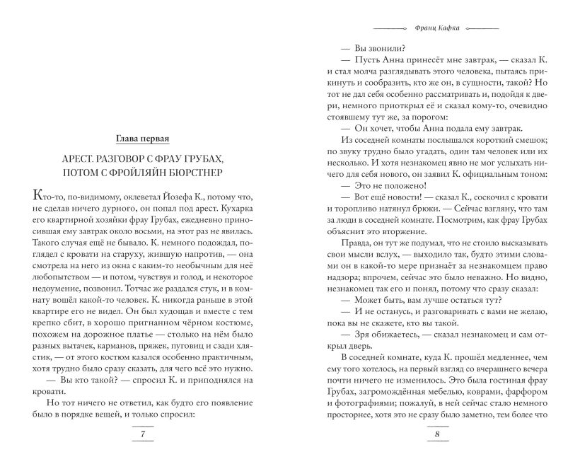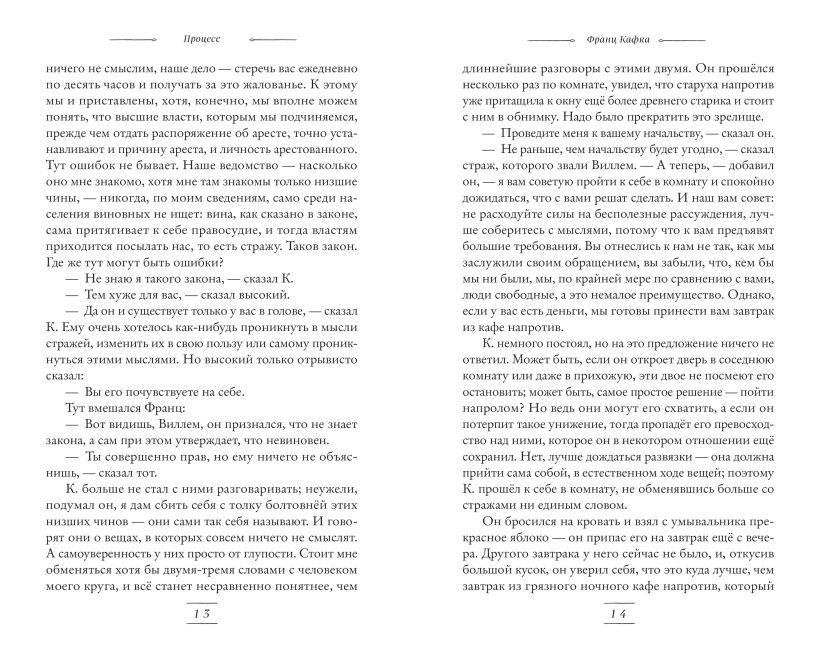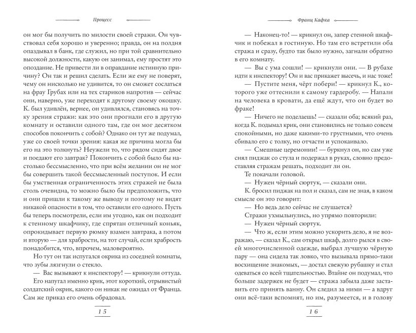 Роман Франца Кафки «Процесс», согласно завещанию автора, должен был быть сожжён после смерти писателя. К счастью, этого не произошло. В итоге «Процесс» не только стал первой книгой, изданной после смерти Ф. Кафки, но и вошёл во всемирную историю литературы. А поклонники творчества писателя не устают находить и расшифровывать тайные смыслы, скрытые в текстах произведений. Роман «Процесс» и шесть коротких новелл, вошедшие в эту книгу, приглашают читателей в странный, непостижимый мир готического абсурда — может быть, ради новых открытий?