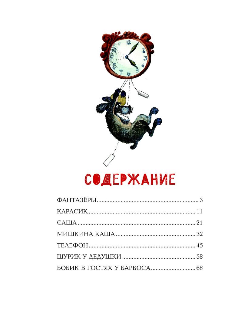 В книгу вошло 7 рассказов Николая Носова («Бобик в гостях у Барбоса», «Мишкина каша», «Телефон», «Шурик у дедушки» и другие) с иллюстрациями заслуженного художника России, лауреата международного конкурса детской книги «Золотое яблоко» Георгия Юдина.