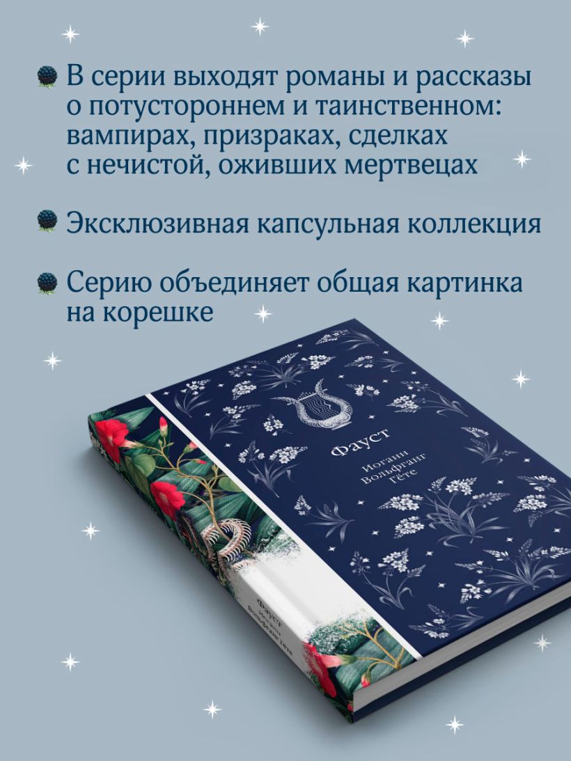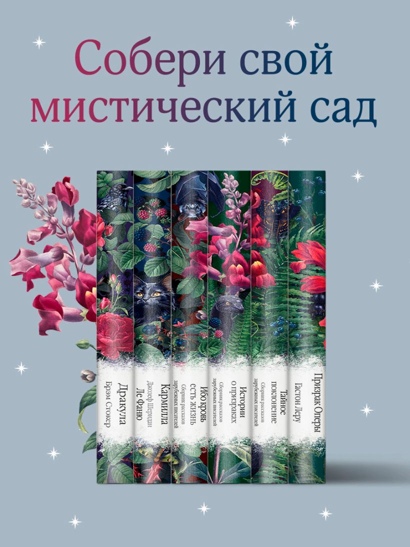 Капсульная коллекция внутри серии «Элегантная классика»! Любовь многогранна, может вознести, а может разбить сердце. Любовь может идти рука об руку с притягательной тьмой, манящей в потусторонние миры. Поэтому в привычный макет серии мы добавили темные краски, убийственно красивые цветы, а также животных-проводников. Капсулу объединяет общая тематика мистического и картинка на корешке, внутри макет с иллюстрациями.