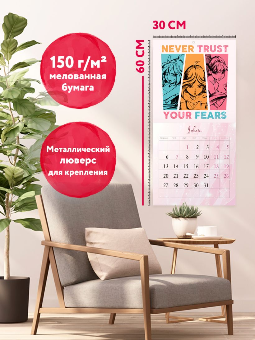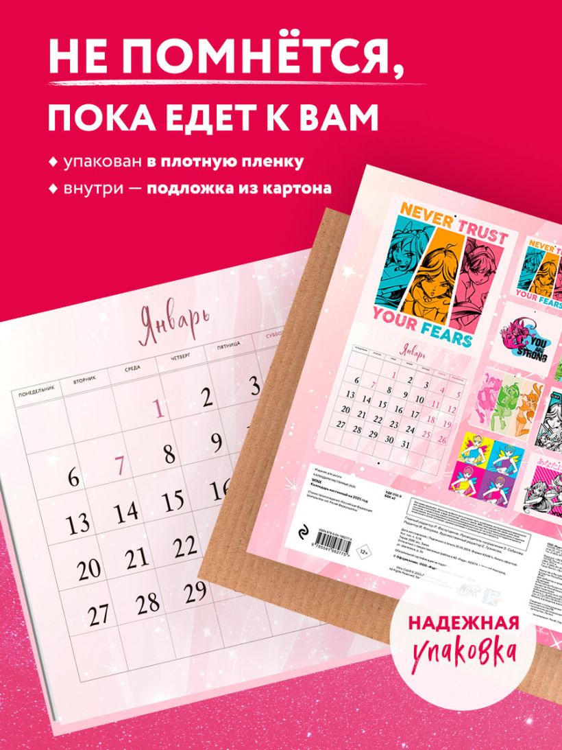 Отправьтесь в мир магии Winx с помощью стильного настенного календаря! Этот эксклюзивный календарь – идеальное сочетание ностальгии и очарования, которое никого не оставит равнодушным. Отличное полиграфическое исполнение и удобная сетка, в которой отмечены все государственные праздники — все это будет дарить вам такие незабываемые эмоции каждый день, что вы не заметите, как пролетит целый год! Прыжок в ностальгию и погружение в мир магии - гарантированы! Позвольте себе снова вернуться в захватывающий мир фей!