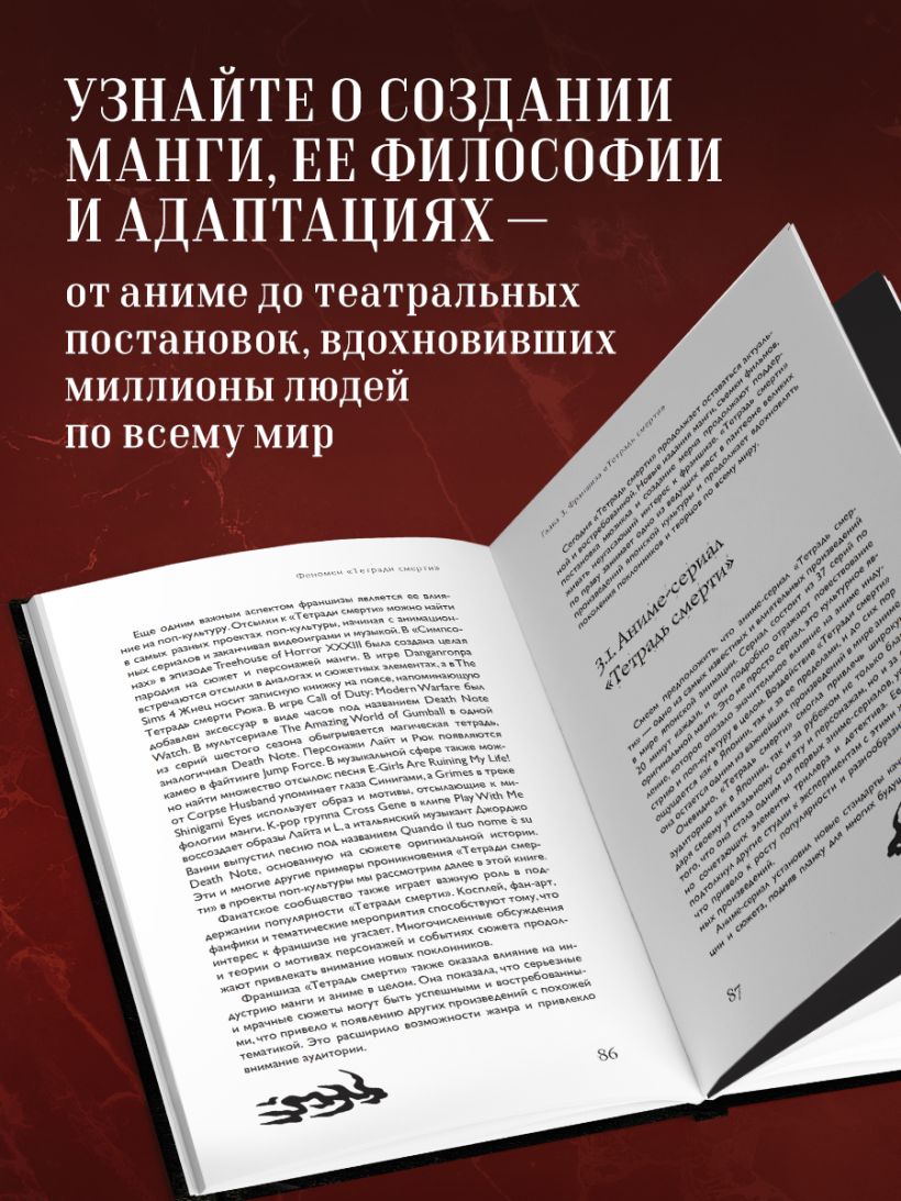 Стильная обложка выполнена в стилистике культового фандома, а вырубка в виде яблока добавляет эффект артефакта, который оценят поклонники японской анимации. «Феномен Death Note» станет отличным подарком для фанатов аниме, любителей философии, исследователей и всех, кто интересуется японской и мировой современной культурой.