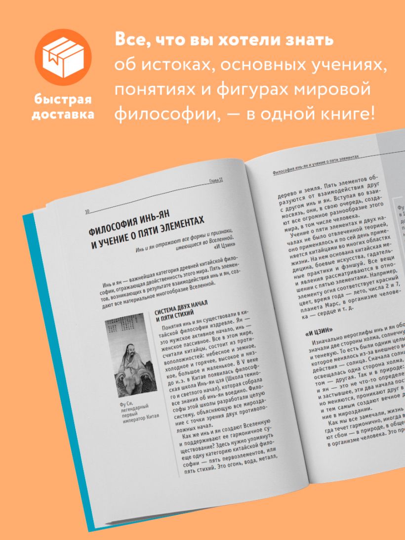 Познакомьтесь с биографиями и цитатами известных философов, основными терминами и концепциями и откройте для себя сложный, но занимательный мир философии. Если вам интересна философия и история философии, эта книга станет незаменимым помощником и поможет восполнить пробелы в знаниях, систематизировать их или узнать что-то новое. Ее удобно брать с собой, и она подойдет читателям всех возрастов.