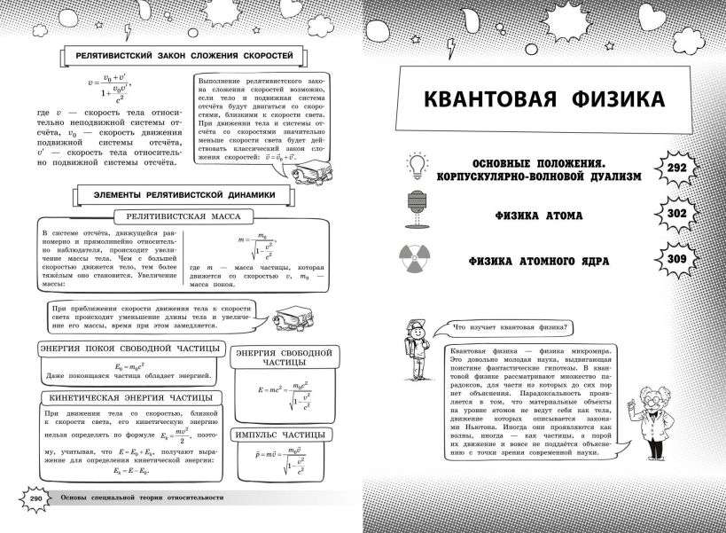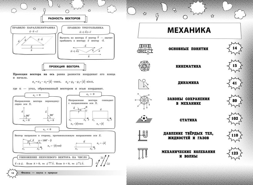Если вы путаетесь в законах, понятиях и не можете уложить в голове весь объёмный материал за школьный курс, то это пособие идеально вам подойдёт. В книге нет длинных и скучных текстов — весь материал разбит по коротким рубрикам, таблицам и схемам, которые дополняют иллюстрации. Важная информация подаётся через вопросно-ответную форму с элементами комиксов. Такая форма изложения теории сделает обучение не только эффективным, но и интересным.