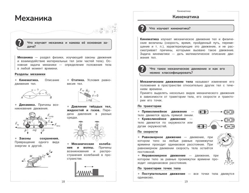 Пособие поможет быстро и эффективно подготовится к урокам, различным формам текущего и промежуточного контроля, а также к экзаменам. В книге в наглядной и доступной форме приводятся основные сведения за весь школьный курс физики. В громоздких учебниках порой бывает сложно найти ответ на какой-то конкретный вопрос. А в данном издании представлена действительно нужная и систематизированная информация, материал изложен последовательно, от простого к сложному, дополняется иллюстрациями, примерами, наглядными схемами и таблицами. В этой книжке для школьников можно найти все основные разделы предмета: «Механика», «Молекулярная физика», «Электродинамика», «Специальная теория относительности», «Квантовая физика». Справочник обеспечит знание и понимание всех, даже самых сложных тем школьной программы. В нем каждый ученик 7-8-9-10-11 классов найдет много полезного для своего образования, обретет уверенность на уроках, контрольных, ОГЭ и ЕГЭ. Пособие окажет помощь родителям во время занятий с детьми.