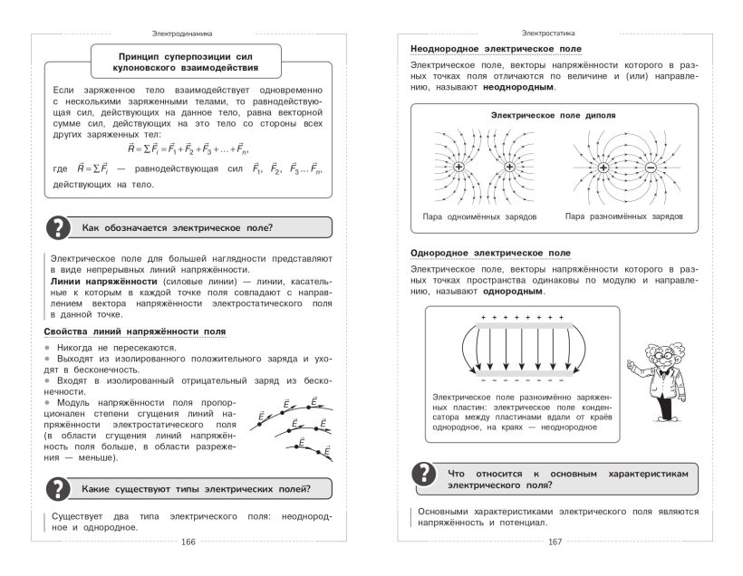 Справочник содержит важные материалы, которые помогут даже в сжатые сроки подготовиться к урокам, ОГЭ и ЕГЭ по физике. Теория школьного курса изложена в наглядной форме и дополняется блоком практических заданий c ответами для комплексного закрепления знаний. Информация представлена в максимально удобной и эффективной для изучения и запоминания форме — в схемах и таблицах, что обеспечит плодотворную и быструю подготовку к урокам, контрольным и различным экзаменам. В пособии можно найти все основные разделы предмета: «Механика», «Молекулярная физика», «Электродинамика», «Специальная теория относительности», «Квантовая физика». В книге ученики 7-8-9-10-11 классов найдут много полезного для своего образования. Книжка станет незаменимым помощником для всех, кто хочет подтянуть свои знания или вспомнить уже изученные темы, подготовиться к урокам и экзаменам, а также будет прекрасным дополнением к учебнику и просто облегчит процесс учебы. Справочник будет полезен и для занятий родителей с детьми.