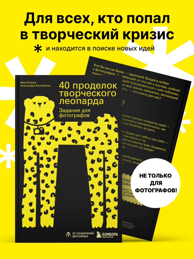 Если вы попали в творческий кризис, то эта книга станет спасением для вас и вашего фотоаппарата! Основатели фотомарафона «Фотожир» (участниками которого стали несколько тысяч человек!) Иван Князев и Александра Кособокова собрали здесь удивительные задания, которые вам точно раньше не встречались. Они помогут вам не только развить воображение, но и открыть новые грани своего творческого «я».